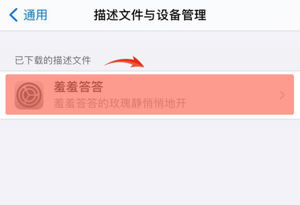 在"设置->通用"里,点击下载的描述文件